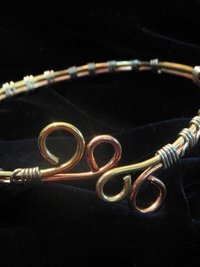 Upper Arm cuff bracelet of copper, brass, and silver wire.